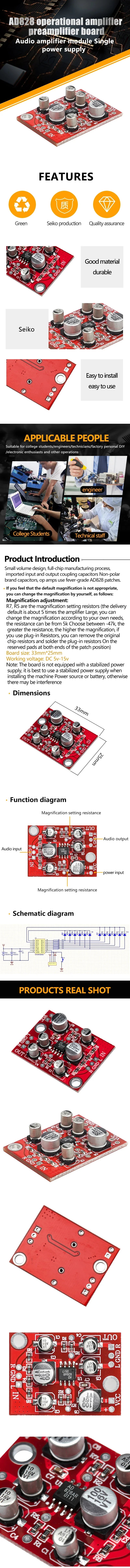 Small size design, SMT process, input and output coupling capacitor using imported non-polar brand capacitors, op amp using fever-level AD828 chip.