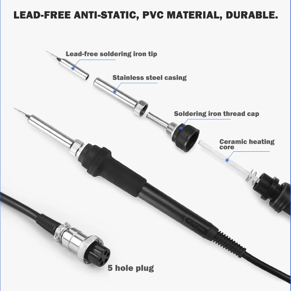 * ESD safe, hot air station, soldering station, and preheater three functions compose by design. The intelligent control circuit, LED display, easy operation.