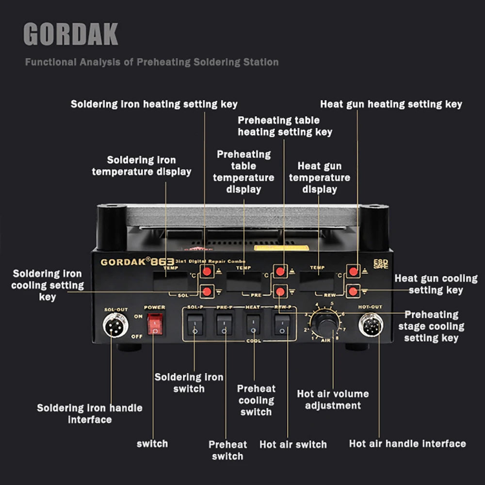 100% Original GORDAK 863 3 in 1 Welding Station Hot Air Rework Station Preheating Station For Soldering&Soldering Iron Electric
