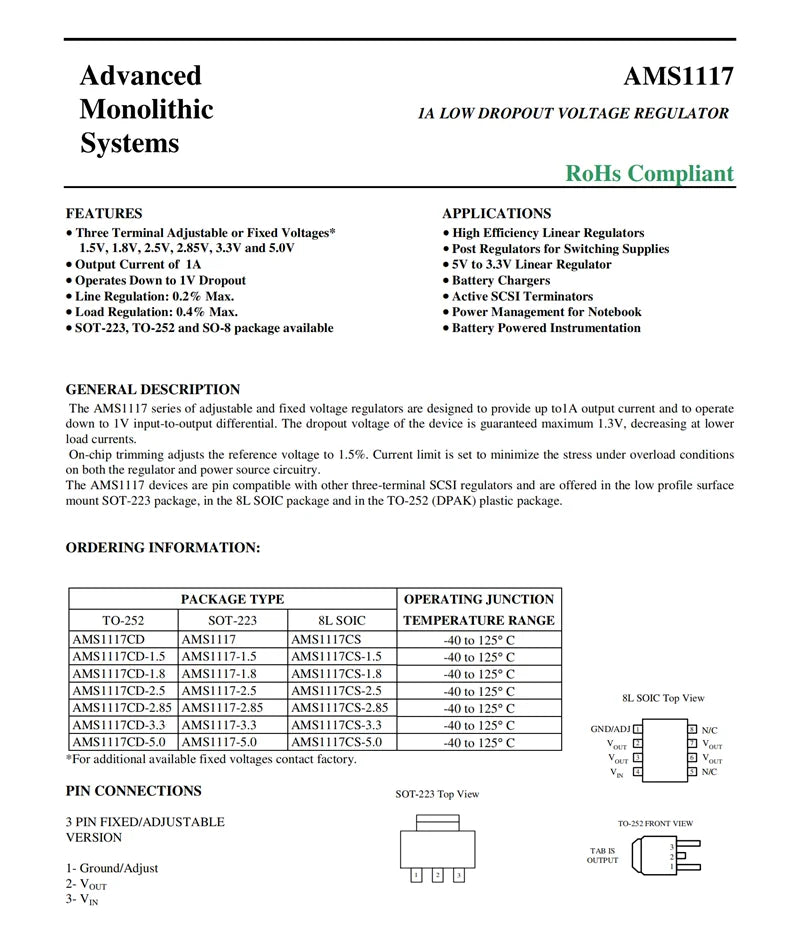 Model Number: AMS1117CD-1.2V 1.5V 1.8V 2.5V 3.3V 5V ADJ
