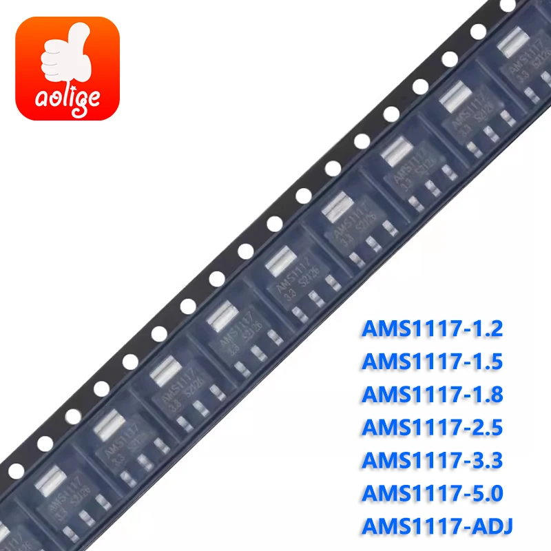 Regulador Voltaje Lineal LDO AMS1117 SMD SOT-223 - Varios Voltajes (1.2V a 5.0V y ADJ) - Lote 10 Piezas