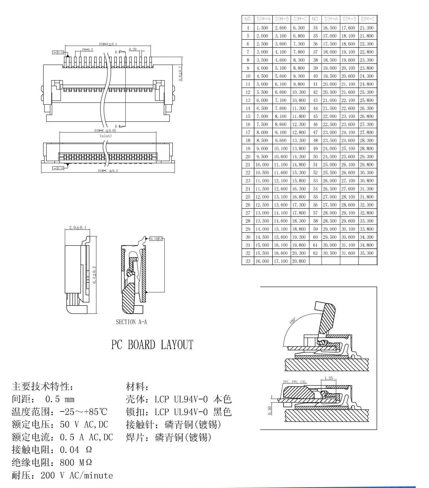 10PCS FFC FPC Connector Flat Cable Socket 0.5MM Adapter 4/5/6/7/8/9/10/12/14/16/18-40P 45/50/54/60/64Pin Down Flip Type Plug Kit