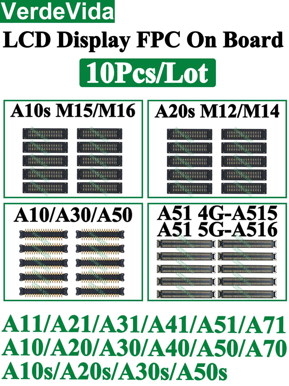 10Pcs LCD Display FPC For Samsung Galaxy A50 A70s A40 A30S A21 A20 A10 M12 M14 M15 M16 A51 Screen FPC Connector Port On Board