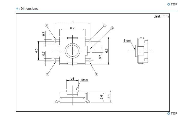 Switch Táctil SMD 6x6x3.1mm 5 Pines (Uso Común LCD/Notebook) - Lote 10 Piezas