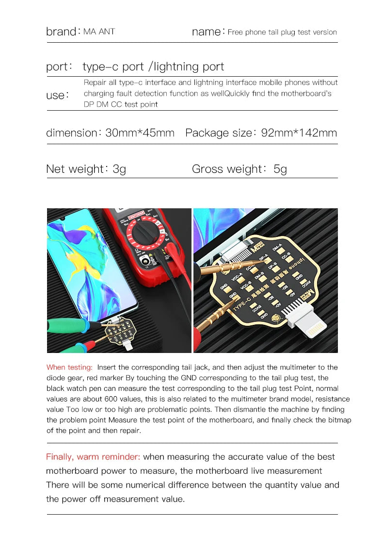 Placa PCB Test Micro USB / Tipo-C - Tester Flex Carga Dock para iPhone (U2) / Android