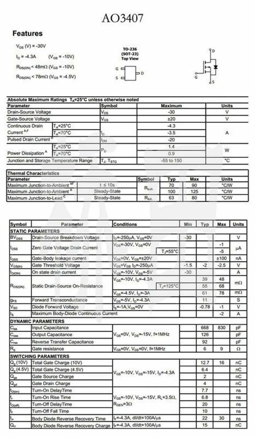 Model Number: AO3407