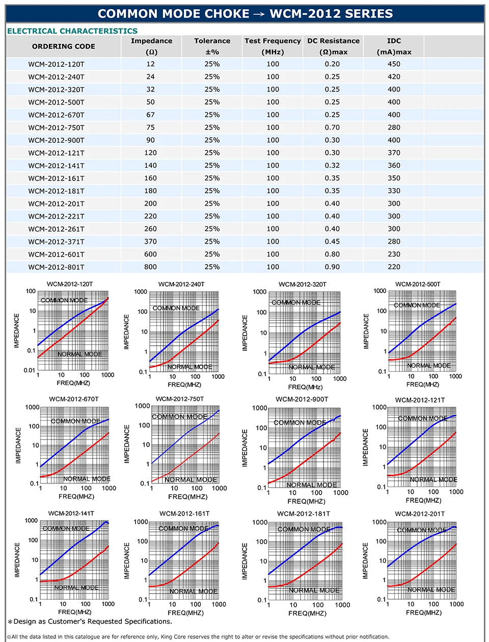 Choque Modo Común SMD 0805 WCM-2012 - Varios Valores (67Ω a 1KΩ) - Lote 20 Piezas