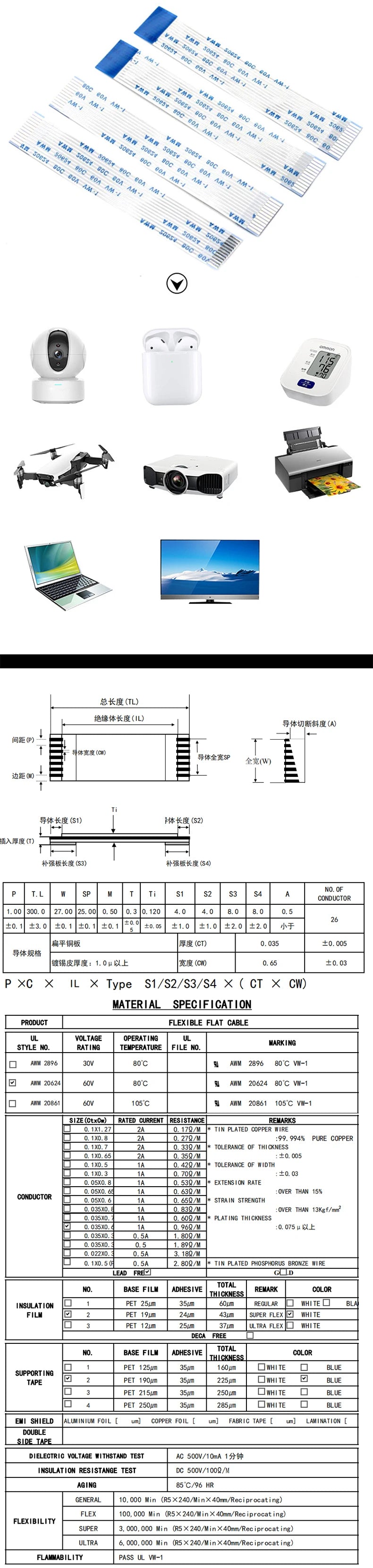 2Pcs FPC FFC Flexible Flat Cable Extension Board soft cable extension 0.5mm 1.0MM Pitch 6 8 10 12 14 20 30 40 50 PIN Connector