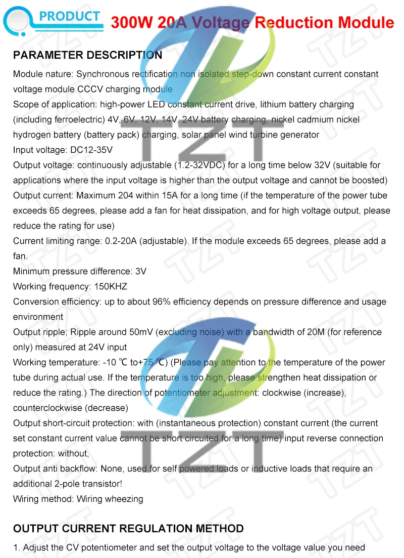 Módulo Convertidor Buck DC-DC 300W 20A Step-Down Corriente Constante Driver LED
