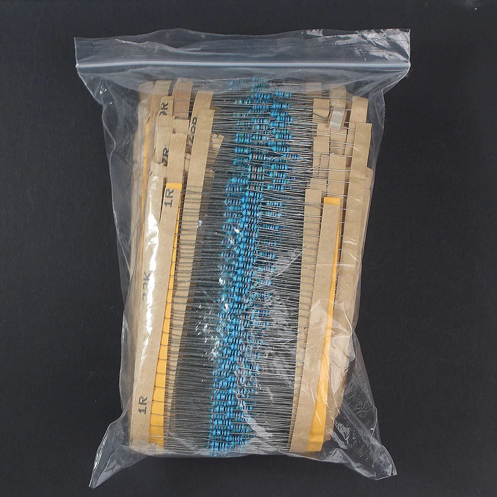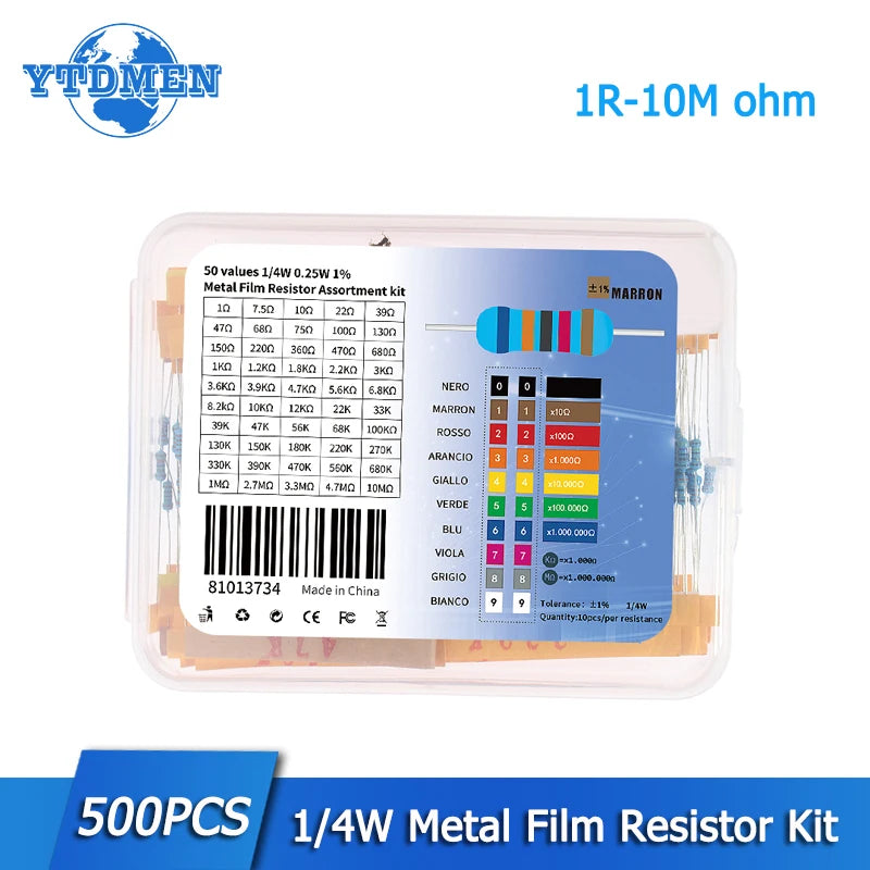 Kit Surtido Resistencias Película Metálica 1/4W 1% (1 Ohm - 10M Ohm) DIY Electrónico (500/2500 Piezas)