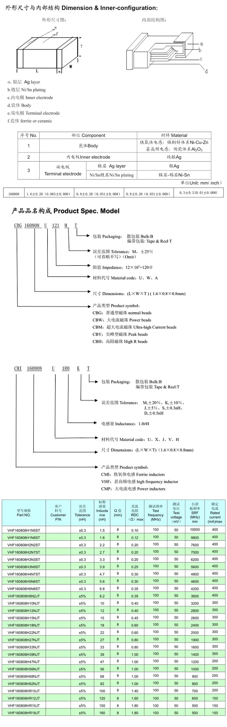 Model Number: 0603 smd stack inductor 47nh 100nh 1uh 2.2uh 4.7uh 10uh 22uh 100uh