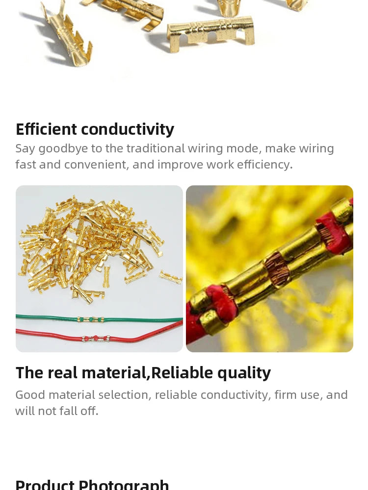 1. golden double connector pure copper terminals, convenient wiring, improve efficiency