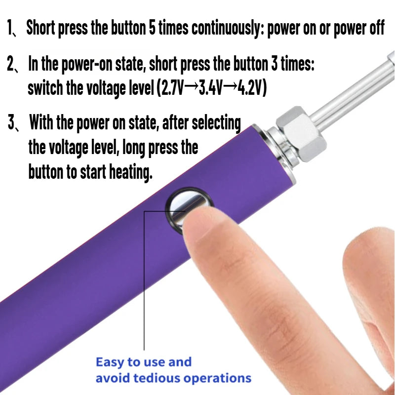 Kit Cautín Recargable USB (Batería Varilla Conector 510) Display LED, Voltaje Ajustable 3 Niveles, Herramienta DIY Reparación