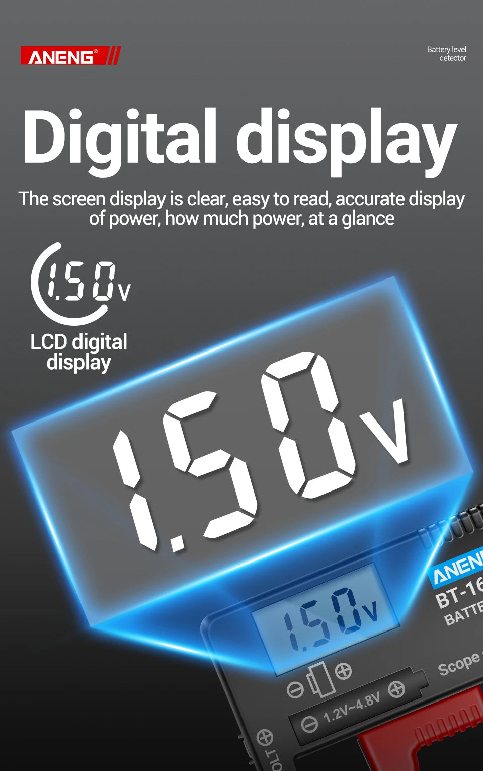 ANENG BT-168 PRO Battery tester Capacity Checkered load analyzer Digital Battery Tester Universal 9V/AAA/ AA Button Cell Test Tools