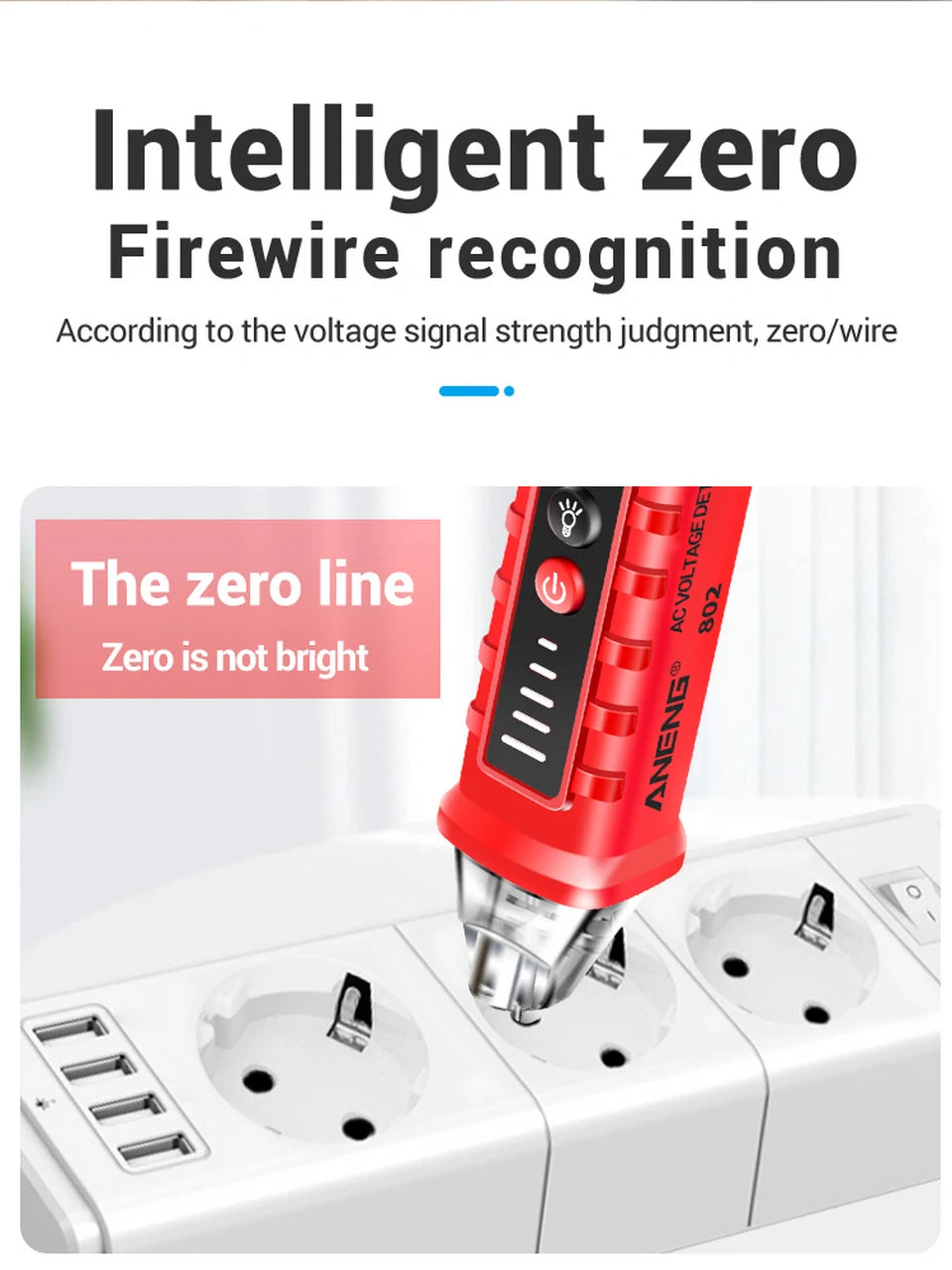Lápiz Detector Voltaje AC Sin Contacto ANENG VD802 (12V-1000V) Indicador Eléctrico LED