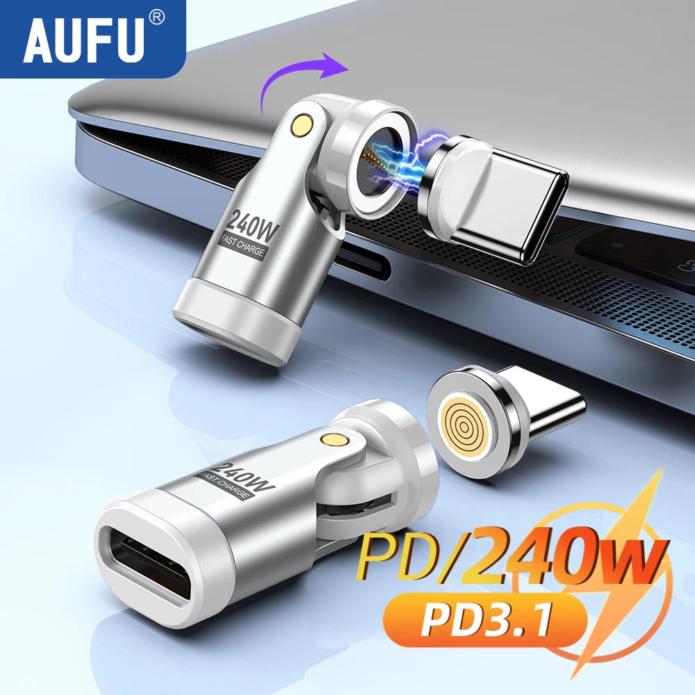Adaptador Magnético AUFU USB-C Hembra a Tipo C Macho 9 Pines (240W Carga Rápida) Convertidor para iPhone 15/16/Laptop/Macbook/Samsung
