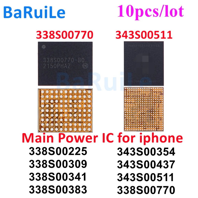 BaRuiLe 10pcs 338S00309 338S00341 338S00770 338S00839 338S00739 338S00425 343S00354 343S00437 343S00511 338S00942 for iPhone 11 12 13 Pro Max 7 8 Plus XS XR 8X PMIC Big Main Power Management Chip IC Repair Part