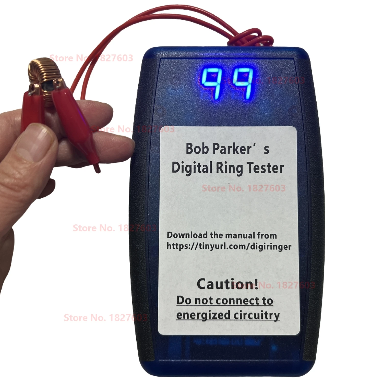 Bob designed a basic version of the "Blue2" microcontroller-based wide range ring tester called the basic wide range ring tester. Unlike the "Blue2," this version utilizes 4000 series CMOS ICs and through-hole components, making it accessible for individuals with electronic skills to build. It is larger than "Blue2" and operates on a 9V alkaline battery with manual power control through a push-on/push-off button. It lacks automatic turn-off and low battery warning features.