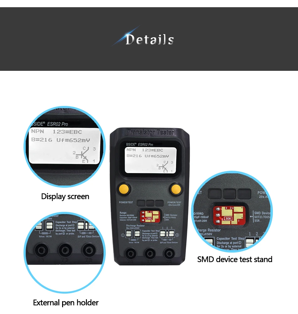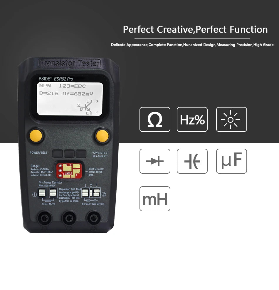 Tester Transistor Multiuso BSIDE ESR02PRO - Medidor Diodo, Triodo, Capacitancia, Resistencia (MOS/PNP/NPN/SMD)