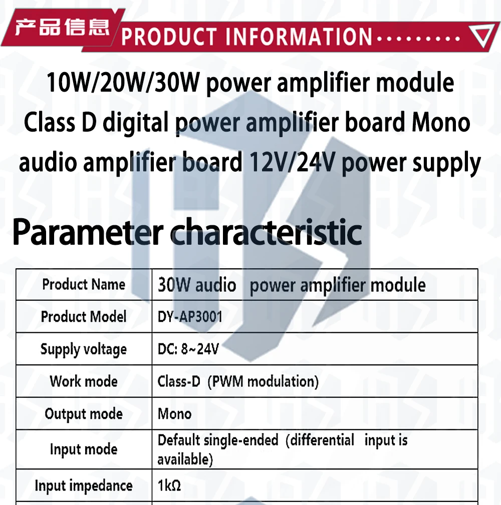 Módulo Amplificador Digital Mono Clase D Alta Potencia DC 8V-24V 4-8 Ohm (30W-300W)