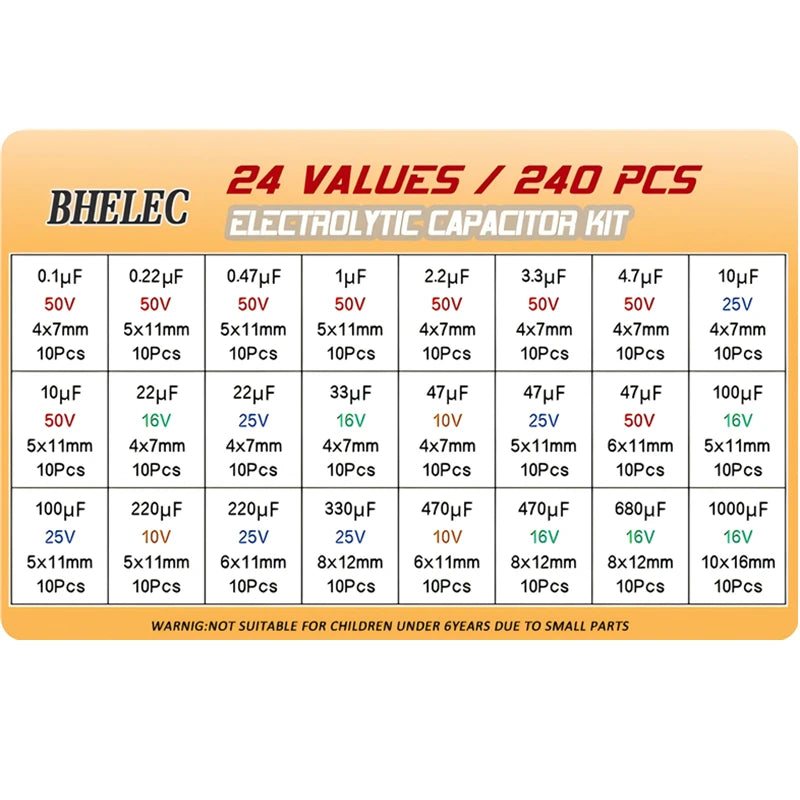 BHELEC Electrolytic Capacitors Kit contain 24 Different Values In-line Aluminum Capacitors - Perfectly suitable for variety electronic experiments.