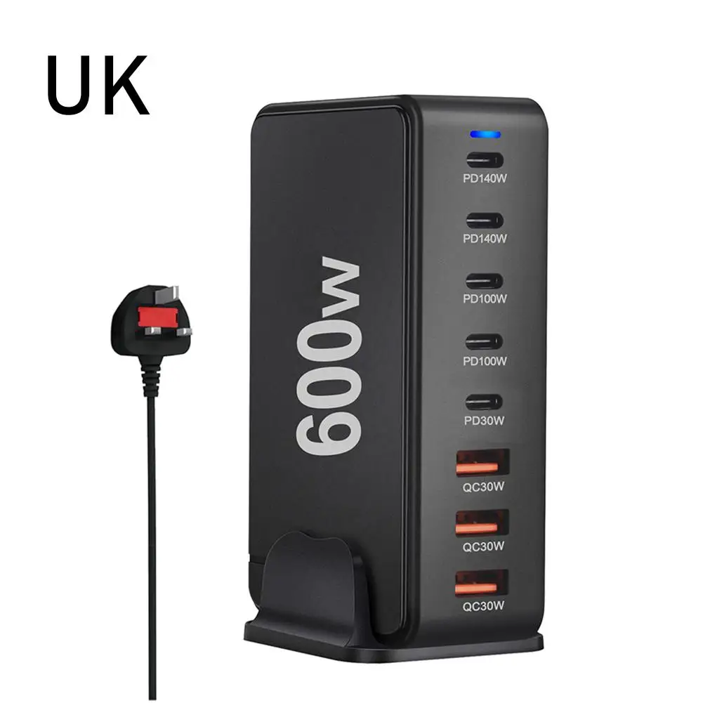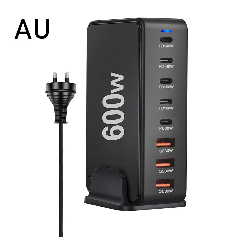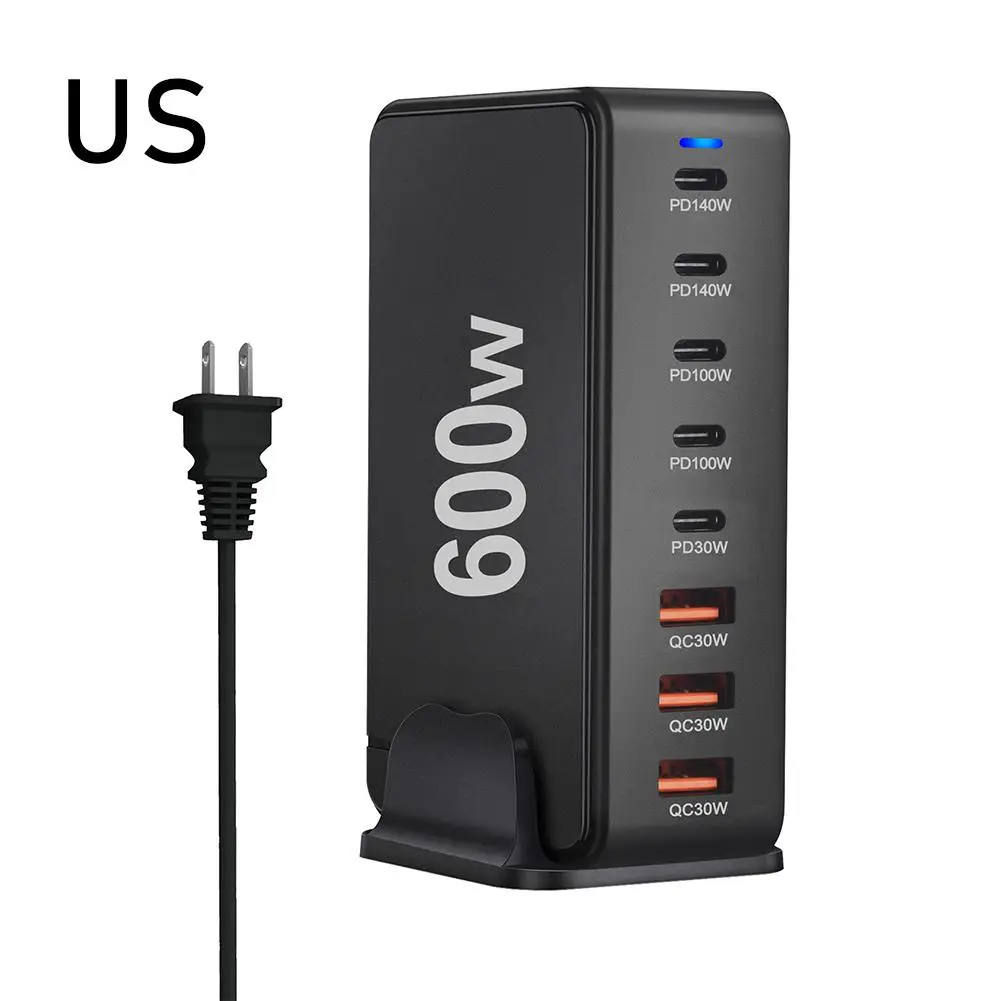 Cargador Escritorio GaN 600W PD3.1 Multifunción 28V/5A USB-C Adaptador US/EU/UK/AU Ahorro Energía