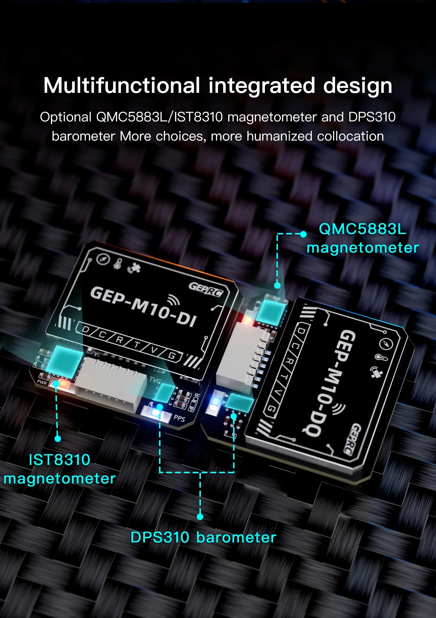 Magnetometer: GEP-M10nano: No / GEP-M10: No / GEP-M10Q: QMC5883L / GEP-M10-DQ: QMC5883L