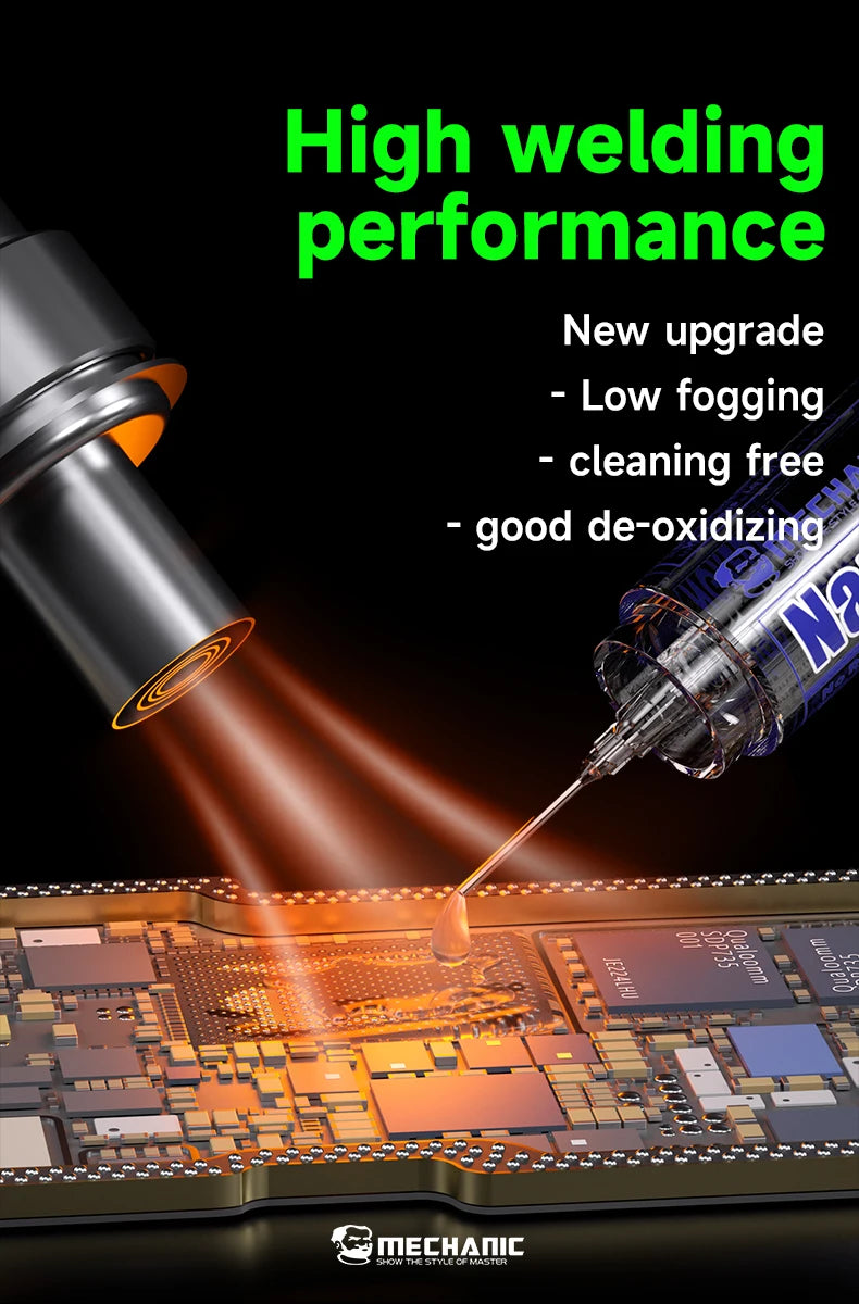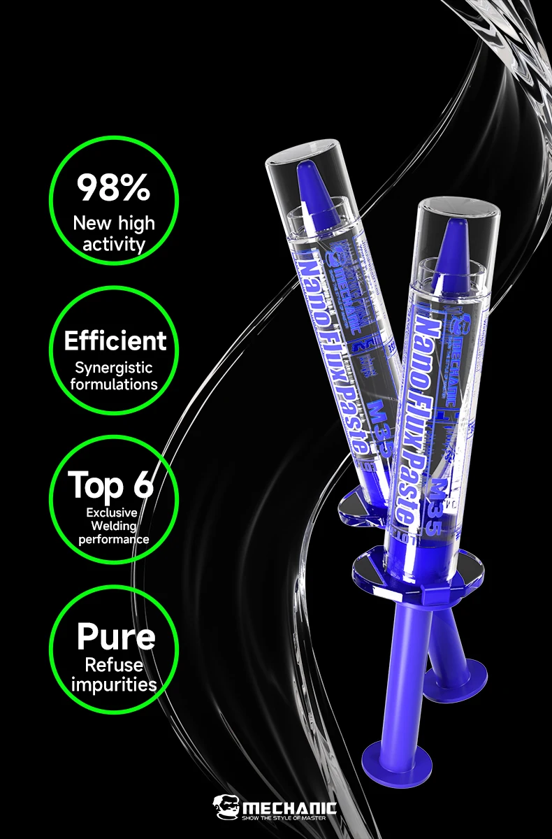 Flux Pasta Nano MECHANIC M35 (10cc) con 3 Agujas para Chip/Placa Base (Alto Rendimiento Reparación) Herramienta Soldadura