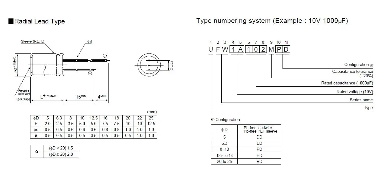 · [Capacitance Tolerance] ± 20% (120Hz, 20 ℃)