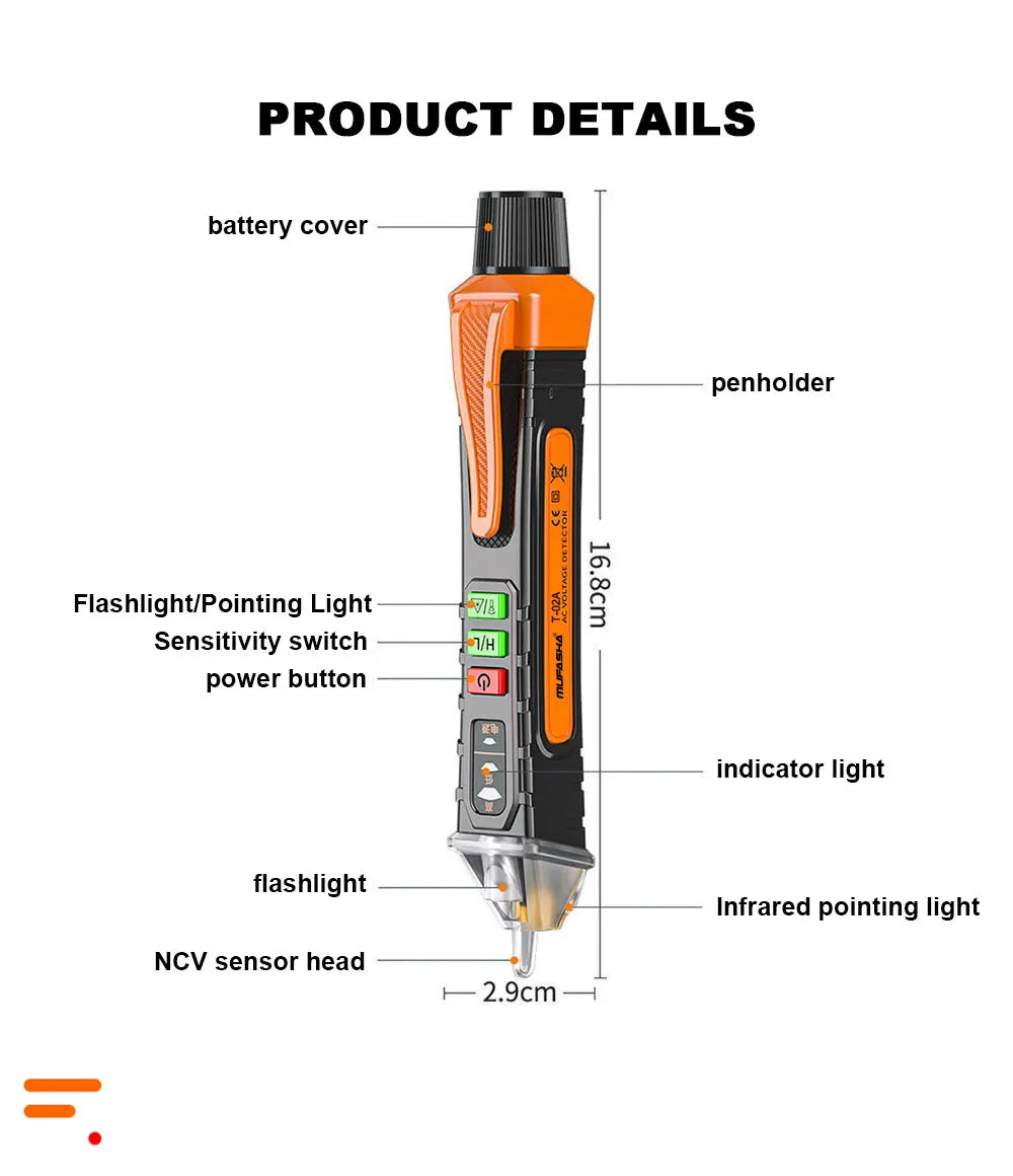 Lápiz Detector Voltaje Eléctrico AC Sin Contacto (12-1000V) Buscador Inteligente Punto Interrupción