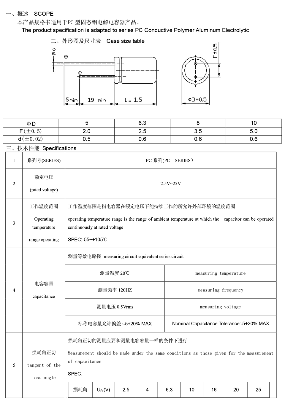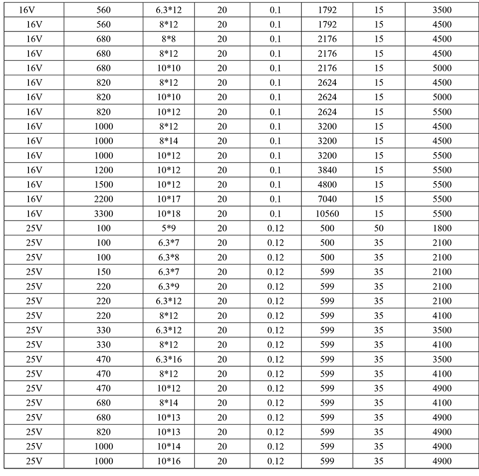 Rated Voltage: 6.3V 10V 16V 25V 35V 50V 100V