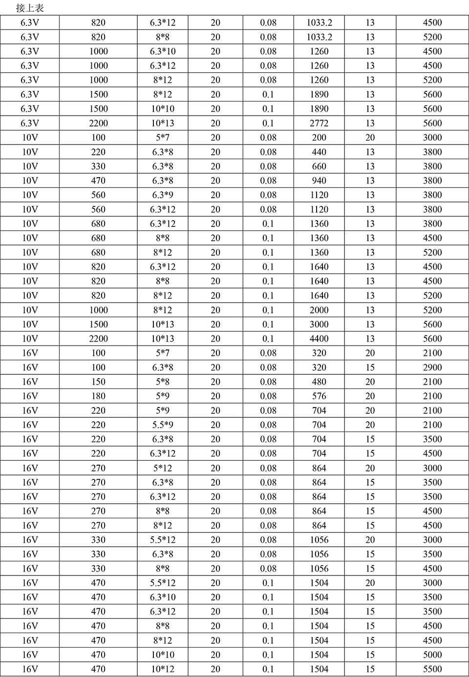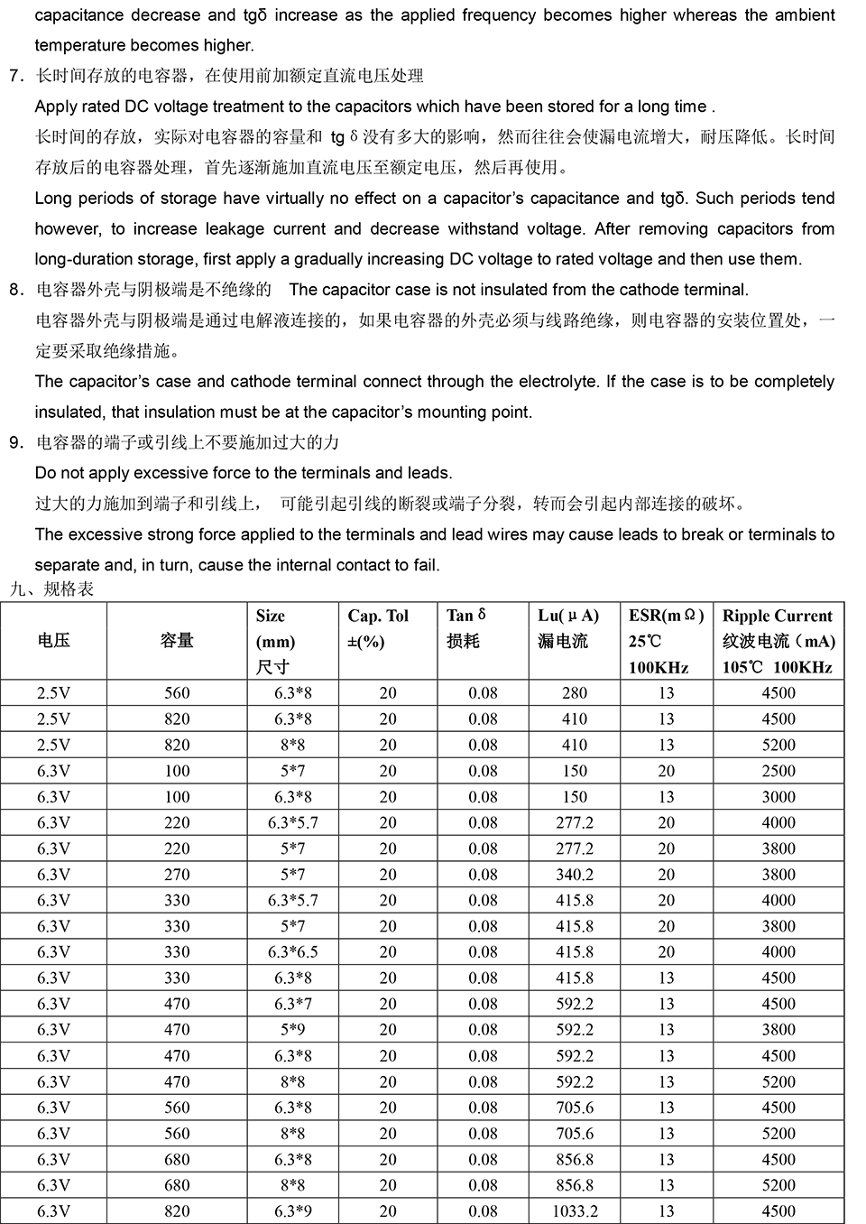 Rated Voltage: 6.3V 10V 16V 25V 35V 50V 100V