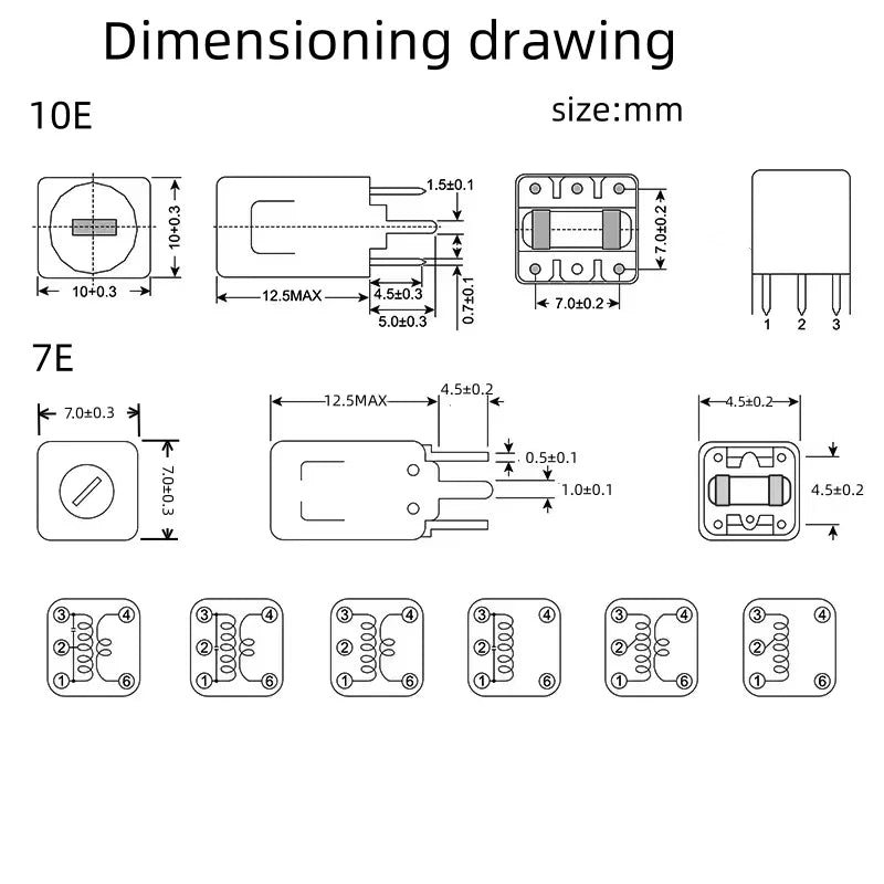 ① Regarding the transformer size: you can choose 7E (7x7x12mm) or 10E (10x10X12mm). We ship 7E by default. If you need 10E, please make a note on the order.