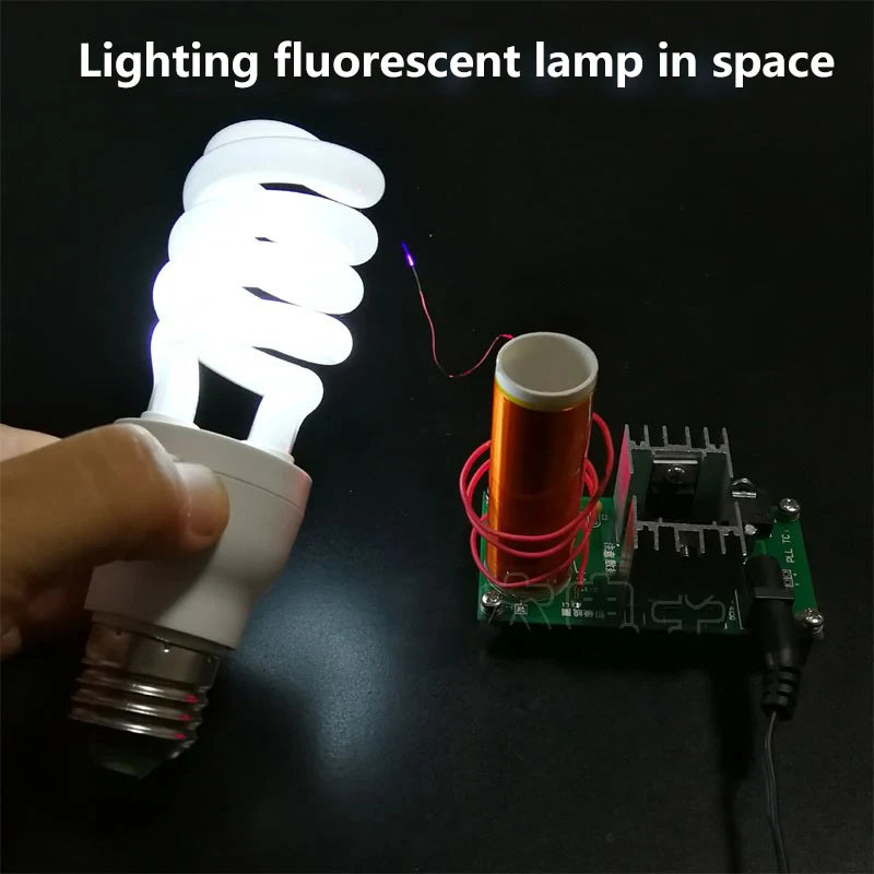 2. Tesla lighting function: after Tesla coil is powered on, the fluorescent lamp can be lit in space!
