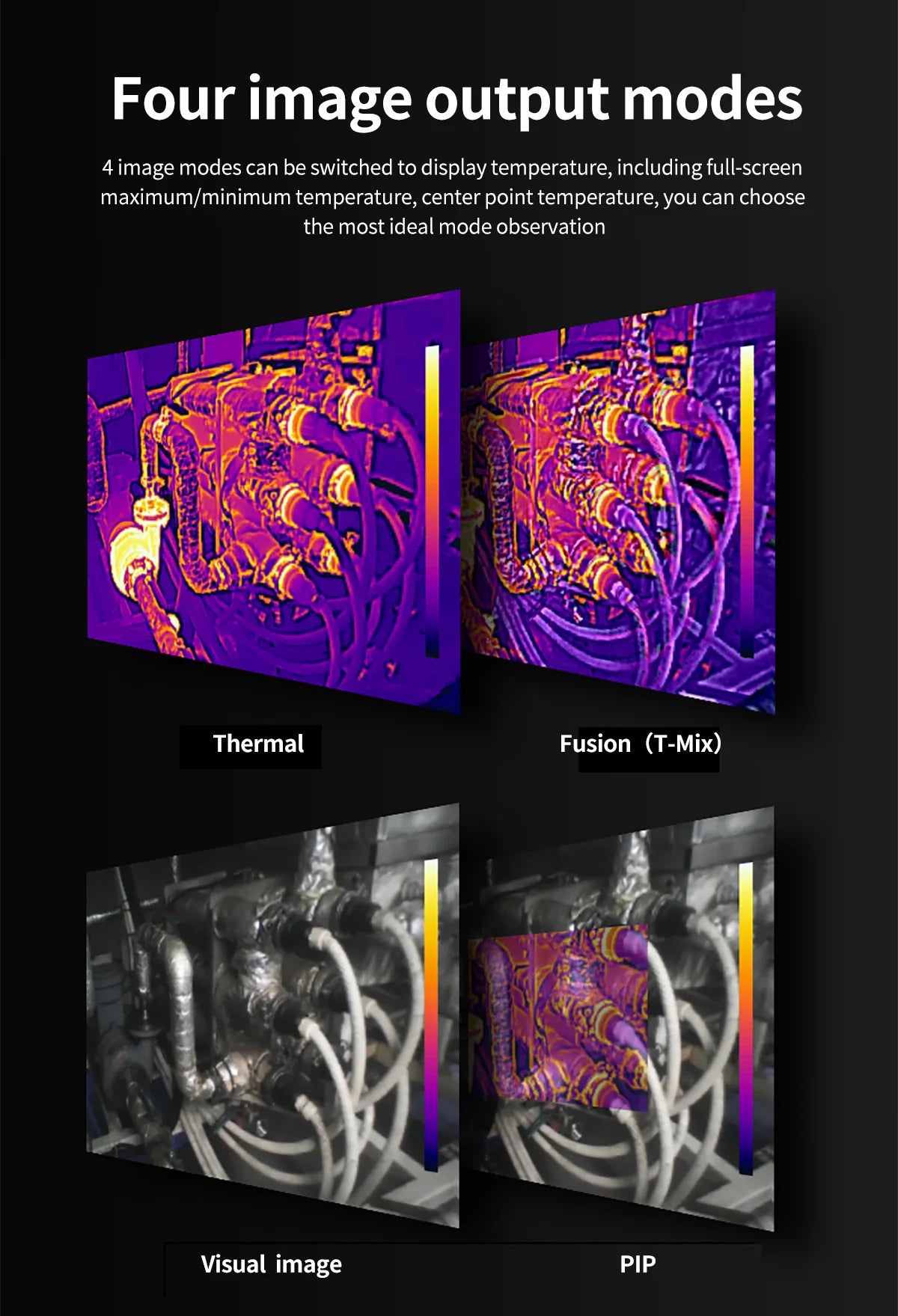 Picture Mode: Thermal imaging, T-Mix fusion, Picture-in-picture, Visible Light