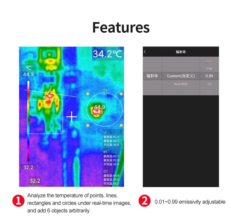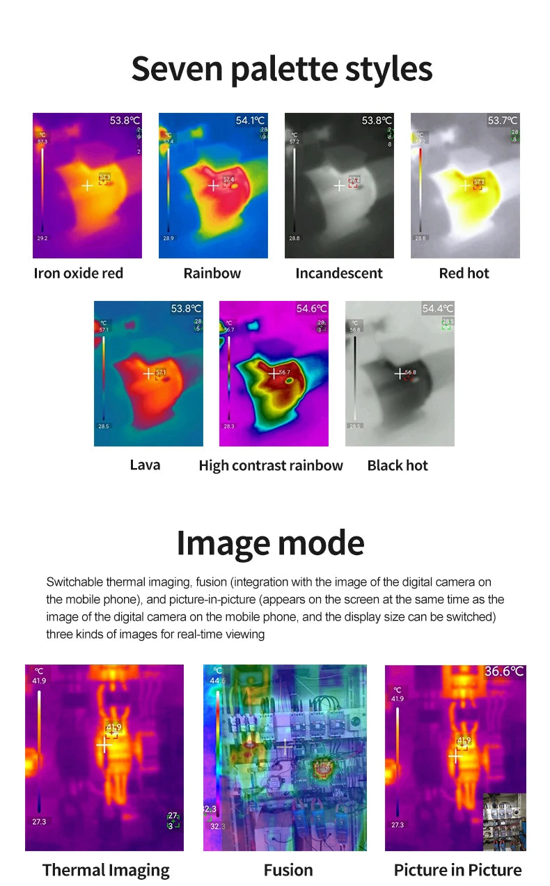 UTi120Mobile/UTi120MS is a thermal camera for smart phone. This product is compact, portable, and easy to operate. Users can find problems faster and easily with it. UTi120Mobile/UTi120MS produces clear image with a fast response, and can detect temperature up to 400℃. It is an indispensable tool for inspecting switchboards, troubleshooting HVAC problems, or investigating heat source hidden dangers inside and outside the house.