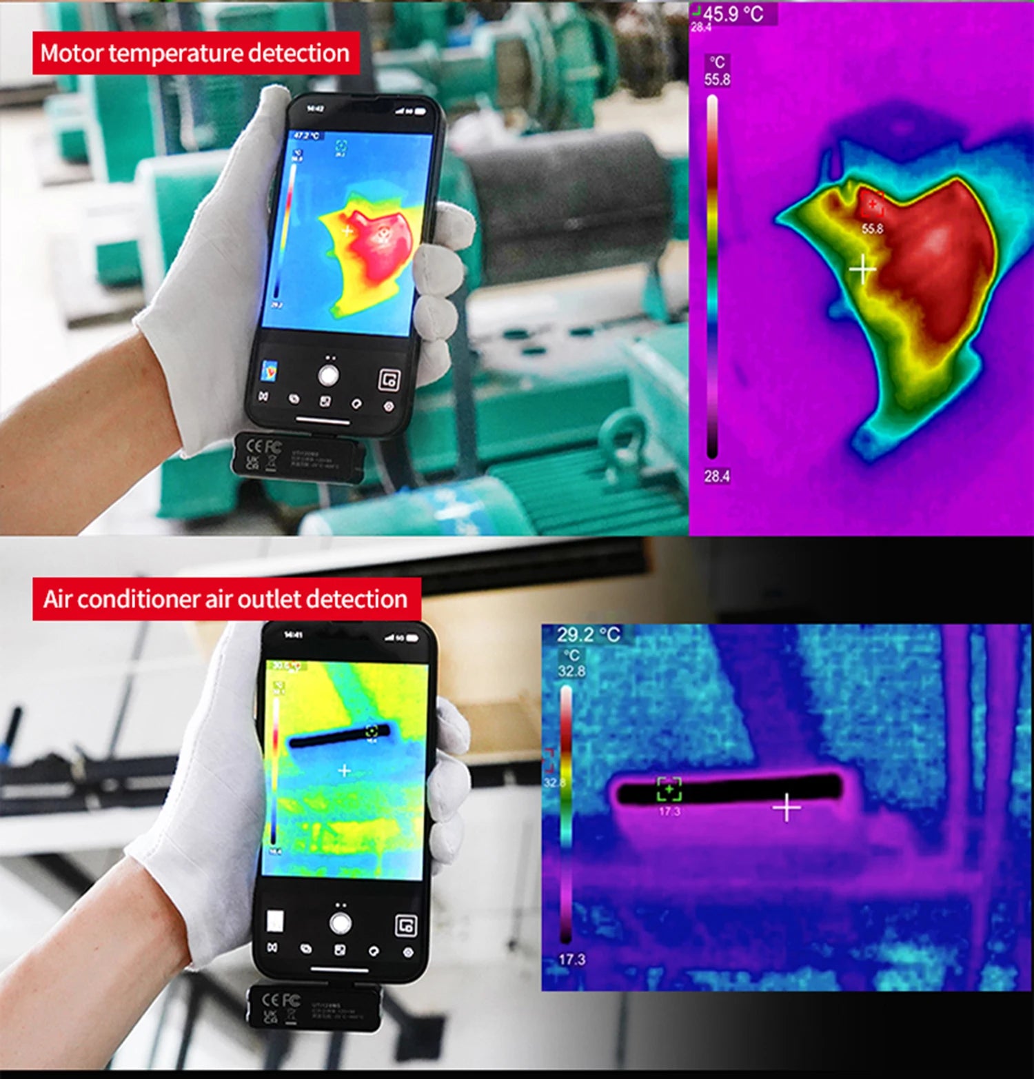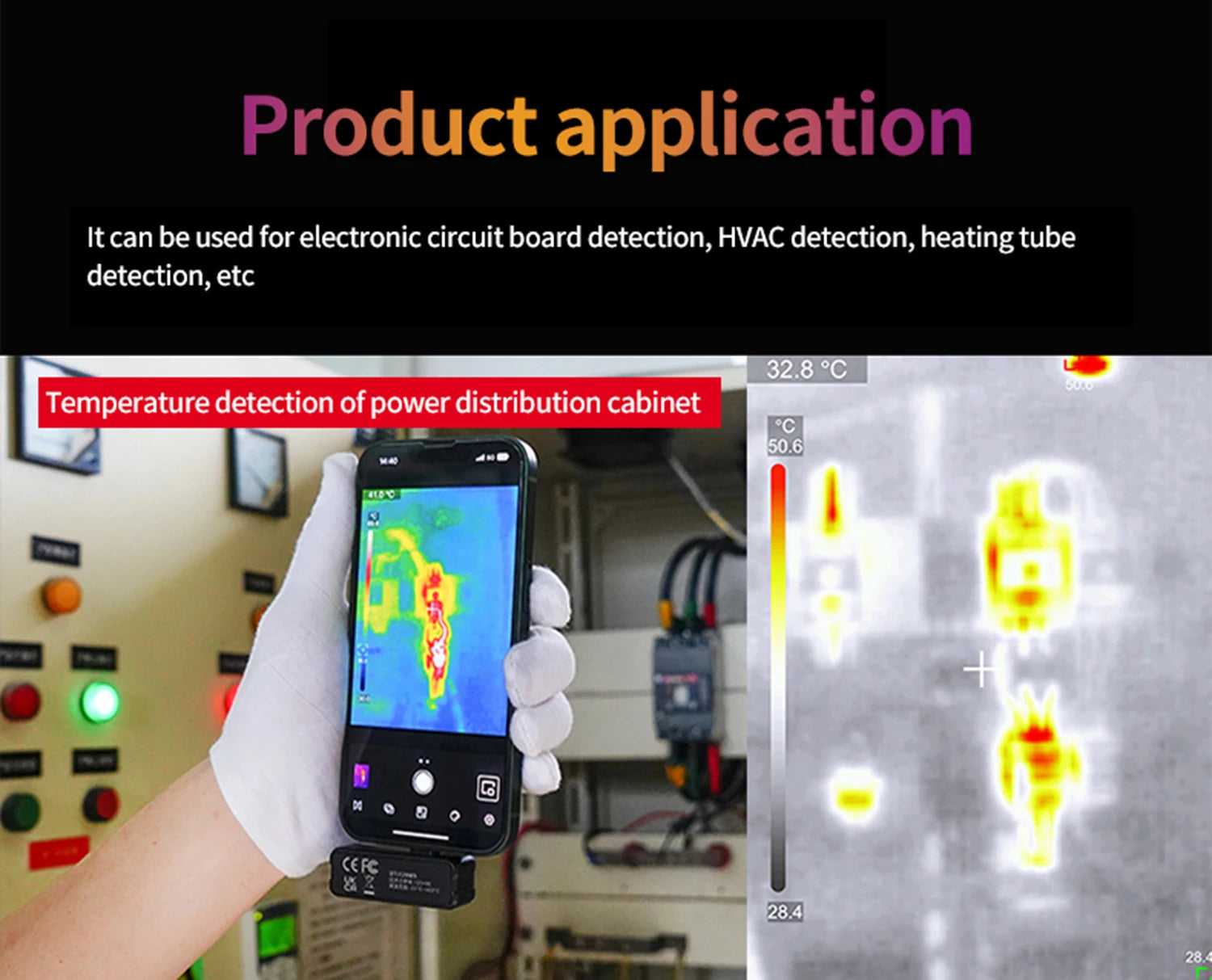 UTi120MS/UTI120Mobile is a professional thermal camera module for smartphones, which is compact, portable, and easy to operate through connecting with mobile phones. UTi120MS/UTI120Mobile provides clear image with a fast response, and can also detect temperature up to 400℃. Users can troubleshoot HVAC problems or investigate heat source issues around the house faster and easier with this thermal camera module.