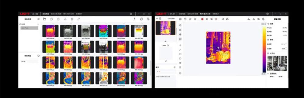 This is an economical handheld infrared thermal imager that integrates imaging and temperature measurement. It is lightweight and portable with complete functions, with a temperature measurement range of -20 ℃ to 550 ℃ and an infrared resolution of 160 × 120. It has center point temperature measurement and automatic tracking of high and low temperatures. It is also equipped with LED lighting, laser indication, high and low temperature alarm, and an IP54/two meter anti drop three proof design, making it easier for you to cope with different working environments. In addition to reading the temperature measurement method of the device itself, it can also take photos and store according to your needs. Through the equipped infrared image analysis software, you can understand every detail in the later stage.