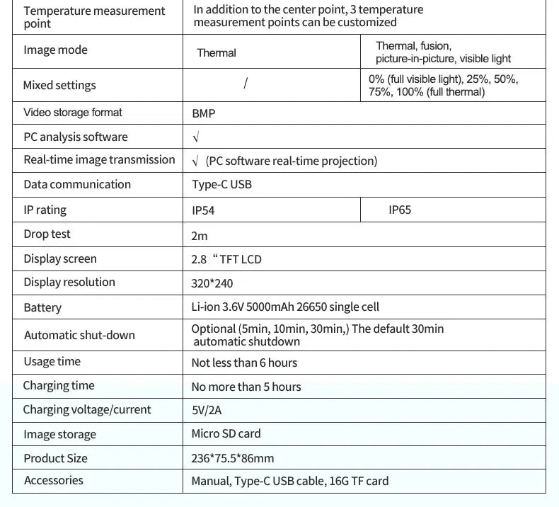 5.Image mode: thermal, thermal fusion, picture-in-picture, visible light