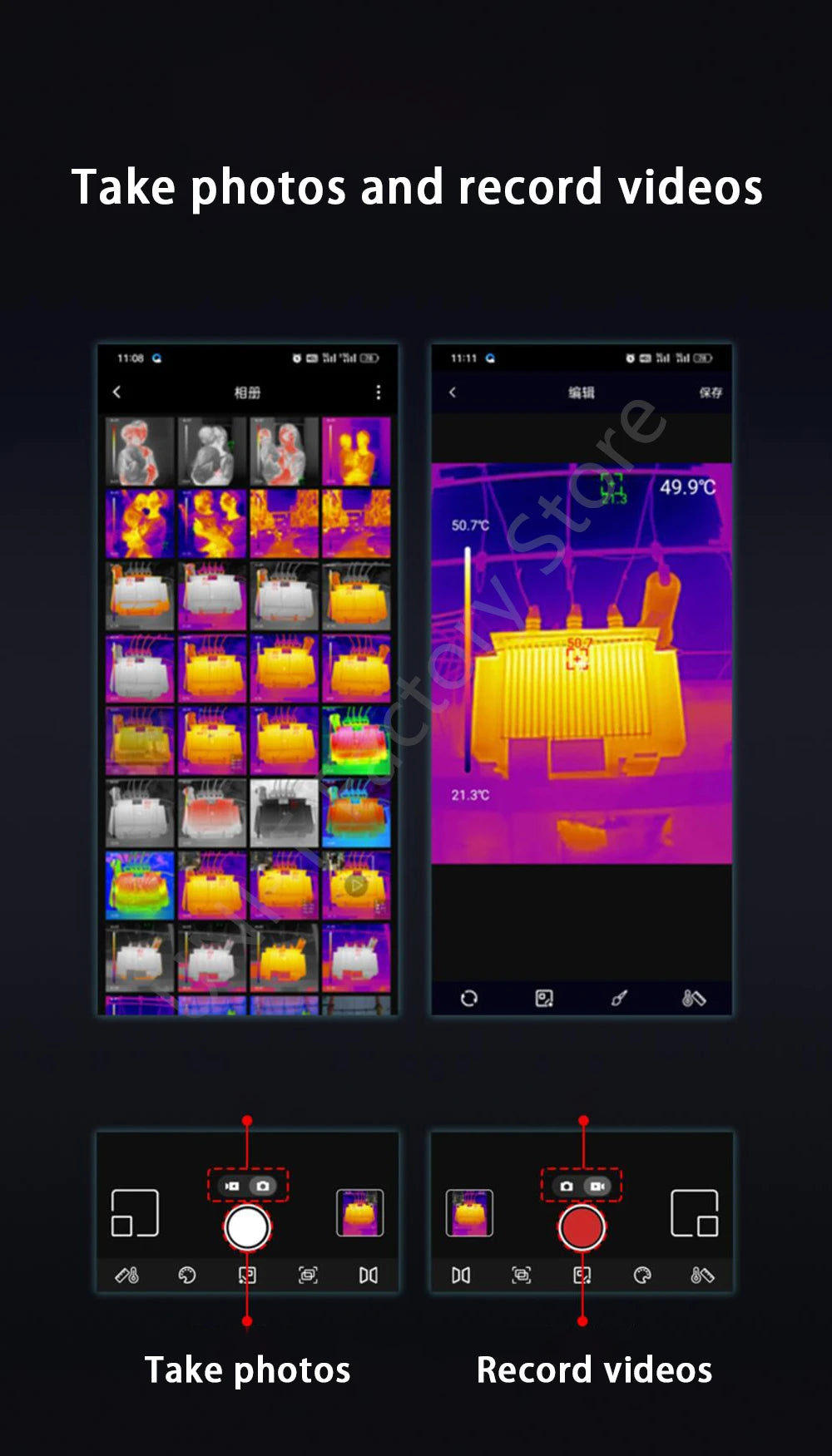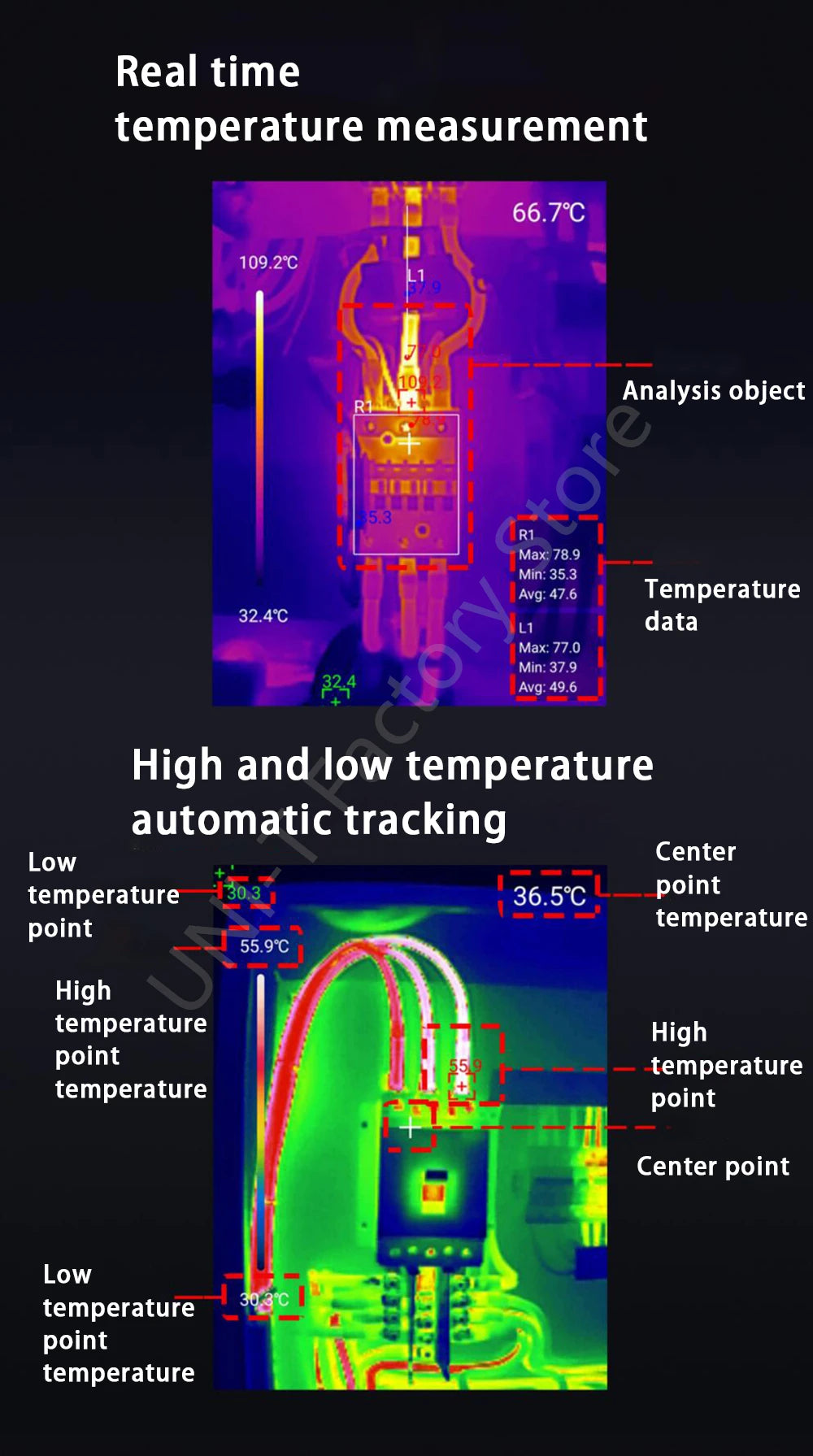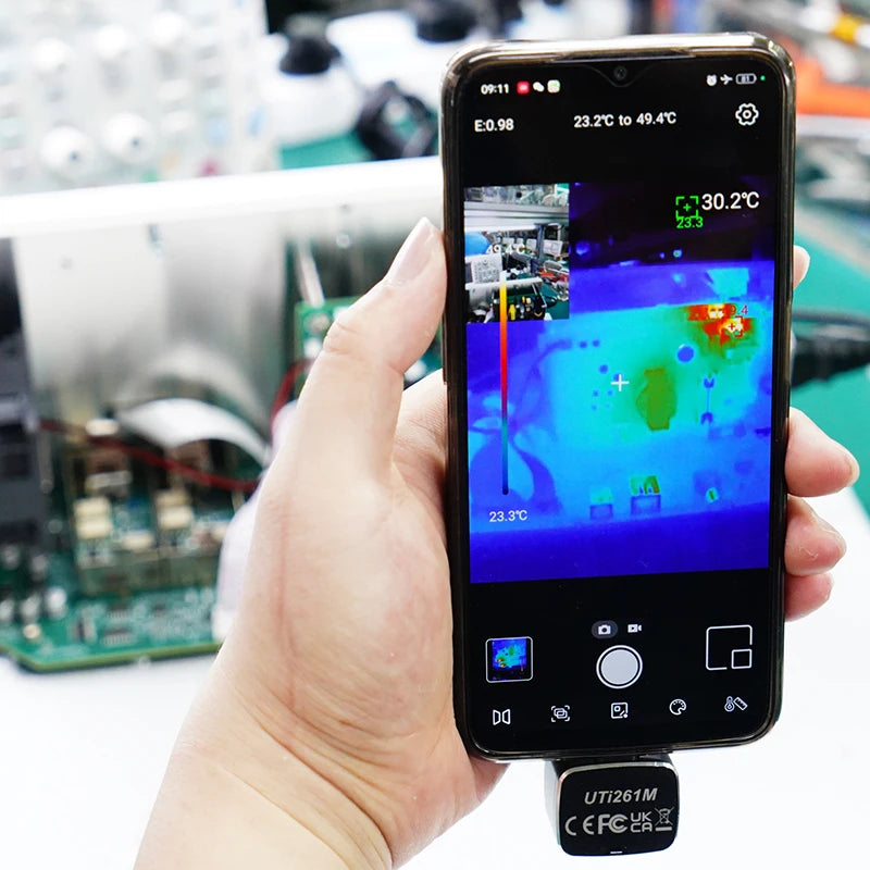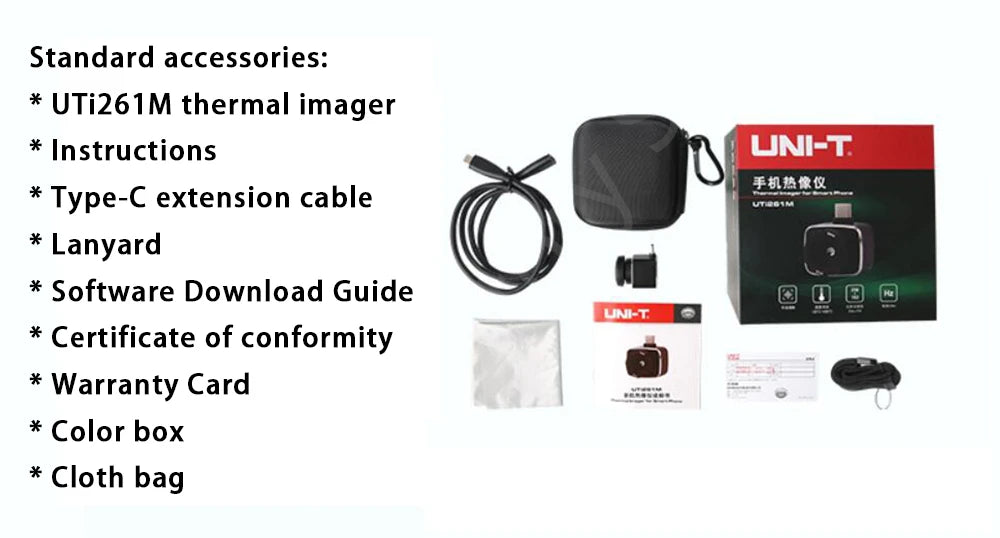 The UTi261M infrared thermal imager can be used in conjunction with mobile phones for infrared thermal imaging temperature measurement. It is compact, portable, and easy to operate. two hundred and fifty-six × 192 pixels, delicate image quality for physical examination. The manual focusing function allows for clearer details on top of excellent imaging. 25Hz frame rate, smooth video without lag, allowing you to quickly and conveniently discover hidden problems- A wide range of 20-450 ℃, covering a wide range of applications, and can also achieve real-time temperature measurement, night vision, photography, video recording and other functions through mobile apps. It is a versatile assistant for your daily work, home life, and adventure travel.