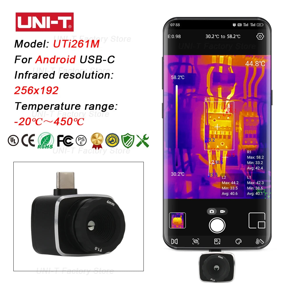 Cámara Térmica UNI-T UTi261M (256x192) para Celular Android (Tipo C) - Termógrafo Infrarrojo (No iPhone)