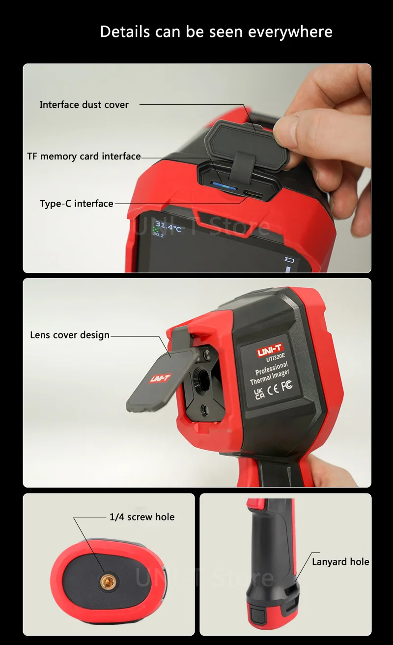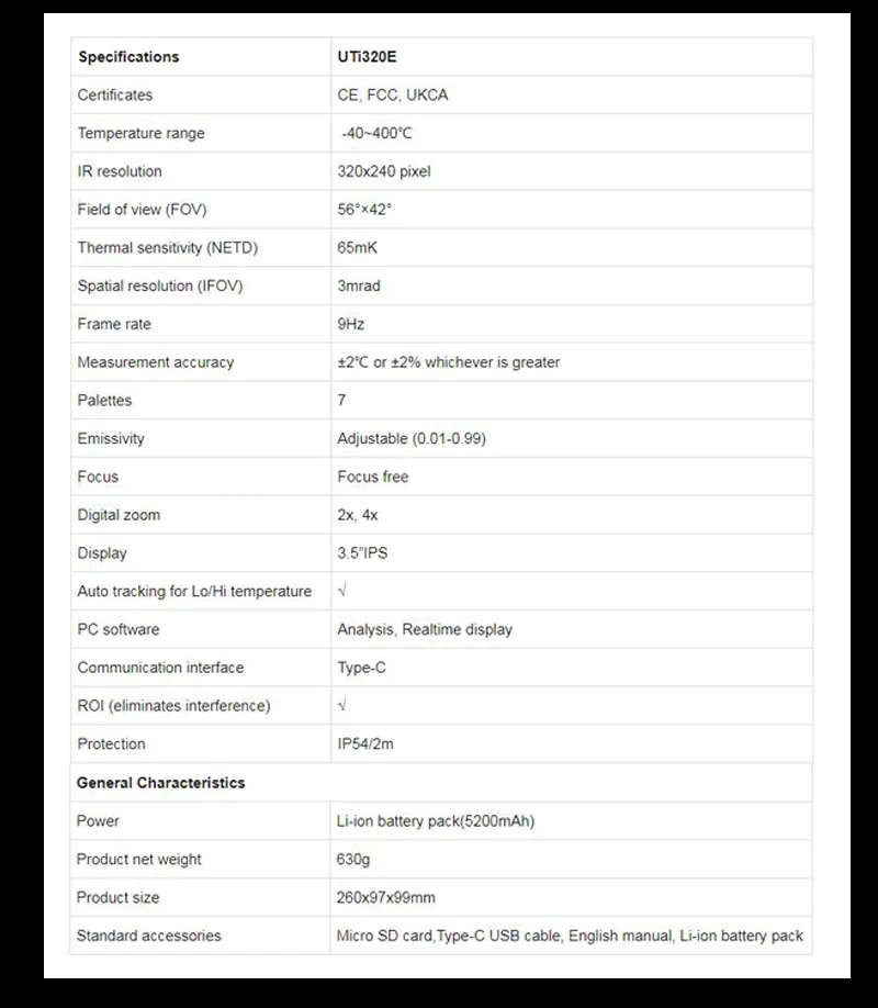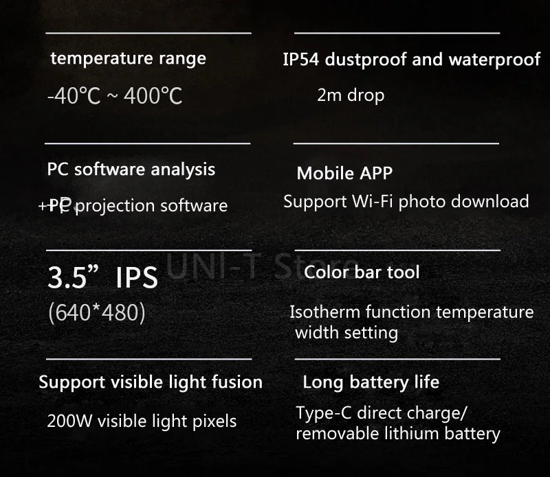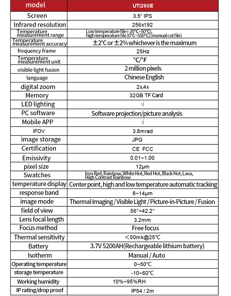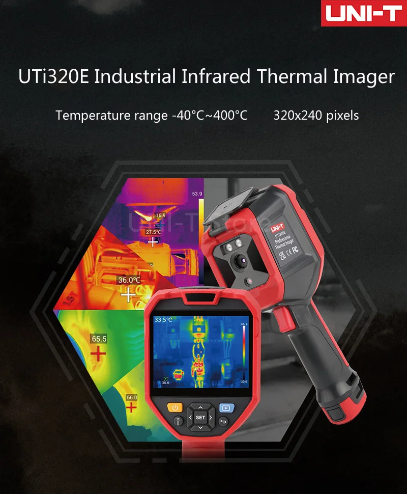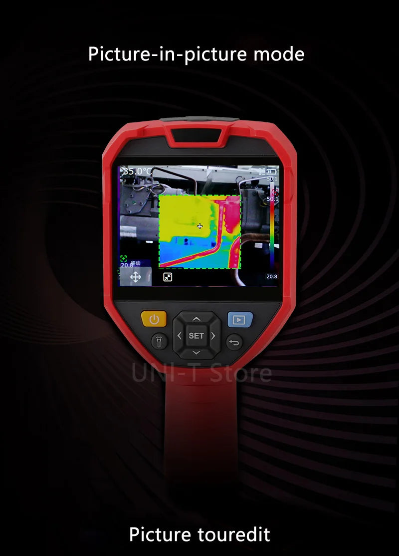 UTi260E/UTi320E handheld thermal imager, in the imaging 3.5" display with clear infrared resolution and 200w visible pixels, center point temperature measurement/high and low temperature automatic tracking/custom analysis object/isotherm custom limit temperature function is more conducive to the rapid detection of abnormalities or want to observe the part.