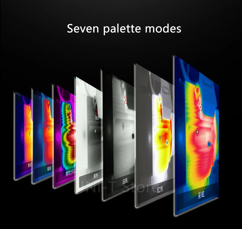 Iron red,rainbow,white hot,red hot,lava,high contrast rainbow |