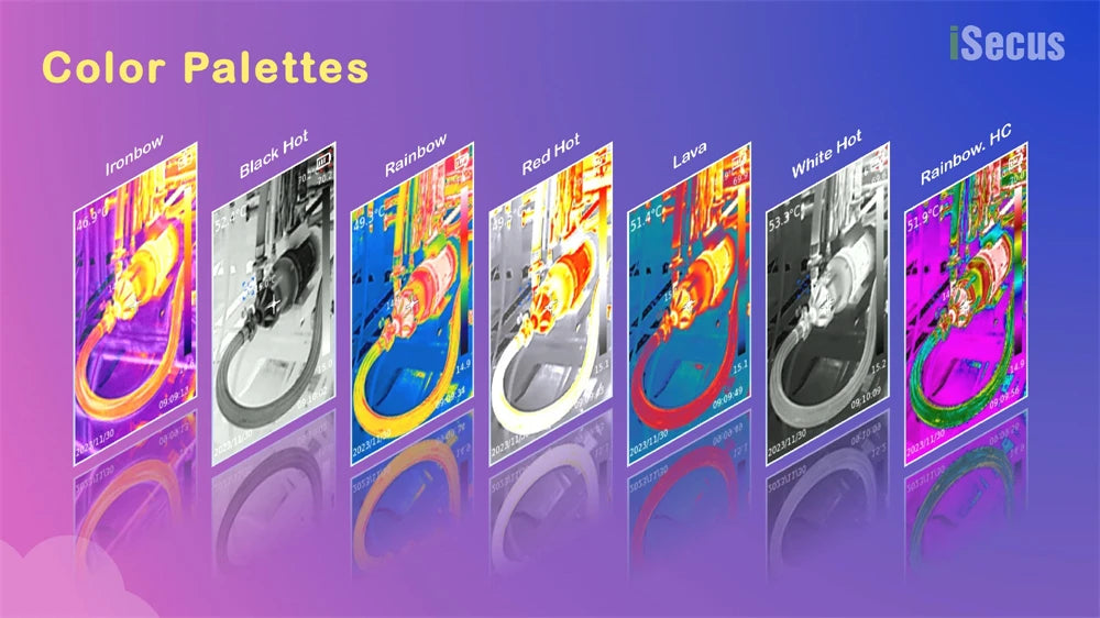 White Hot, Black Hot, Red Hot, Ironbow, Lava, Rainbow, Rainbow HC |
