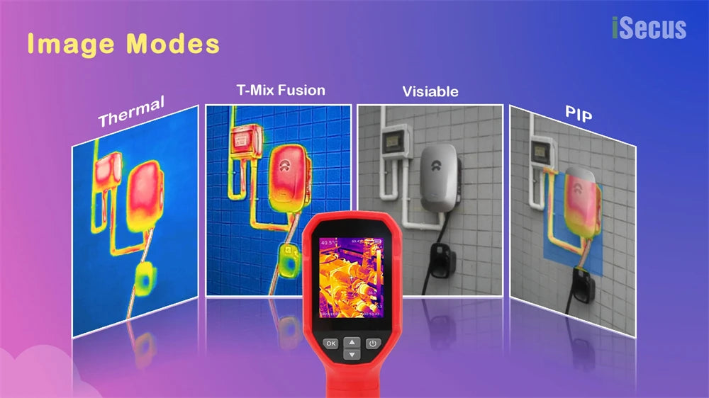 Thermal, Visual image, Fusion (T-Mix), PIP |