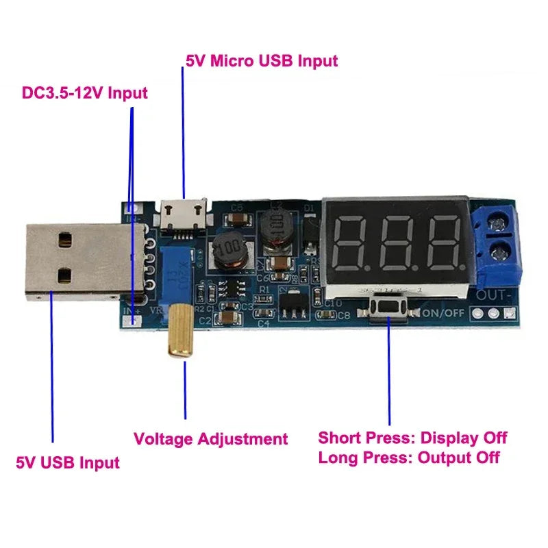 Módulo Convertidor Buck-Boost USB 5V a 1.2-24V DC-DC Regulador Voltaje Ajustable