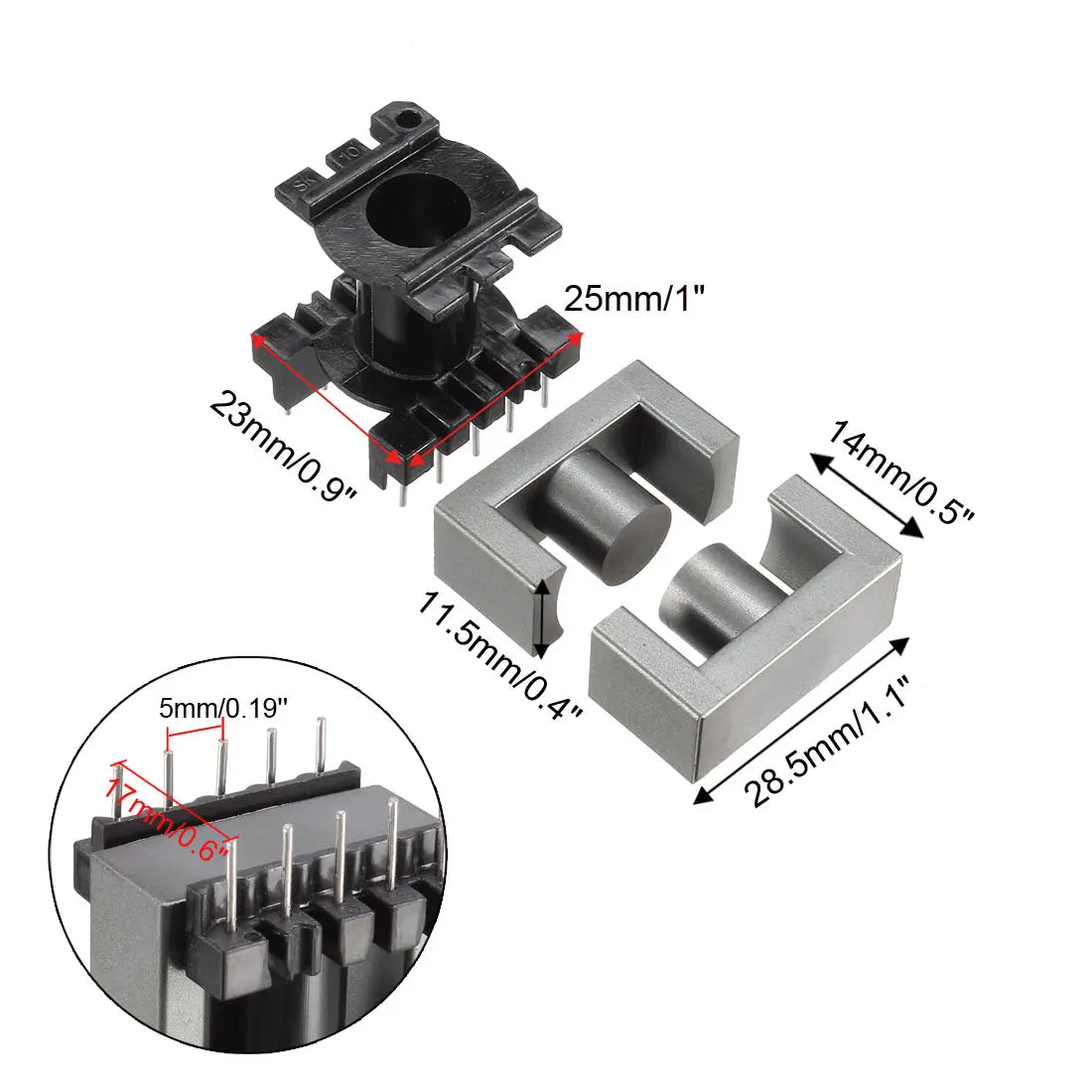 Set Núcleo Ferrita EC28/5 PC40 con Bobina Vertical 5 Pines (4 Juegos: 8 Mitades + 4 Bobinas)