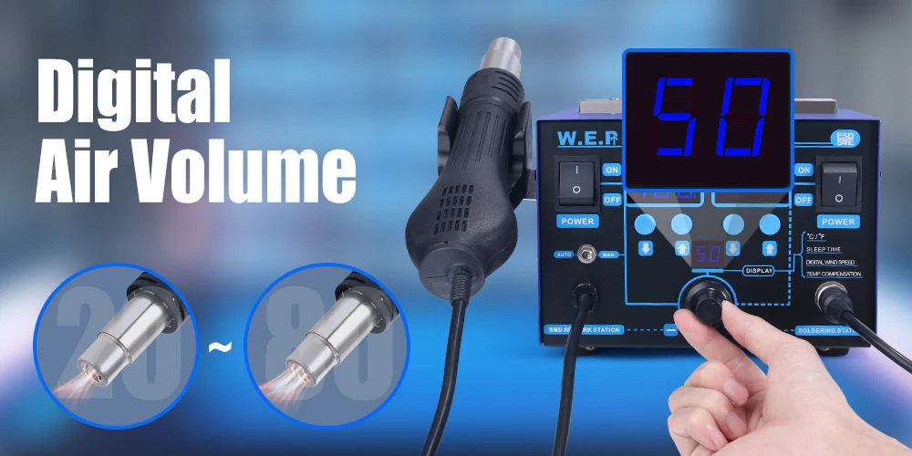 WEP 862BD+ Visible Adjustable Temperture Air Volume BGA Rework Station Hot Air Soldering Station SMD Rework Station With ESD