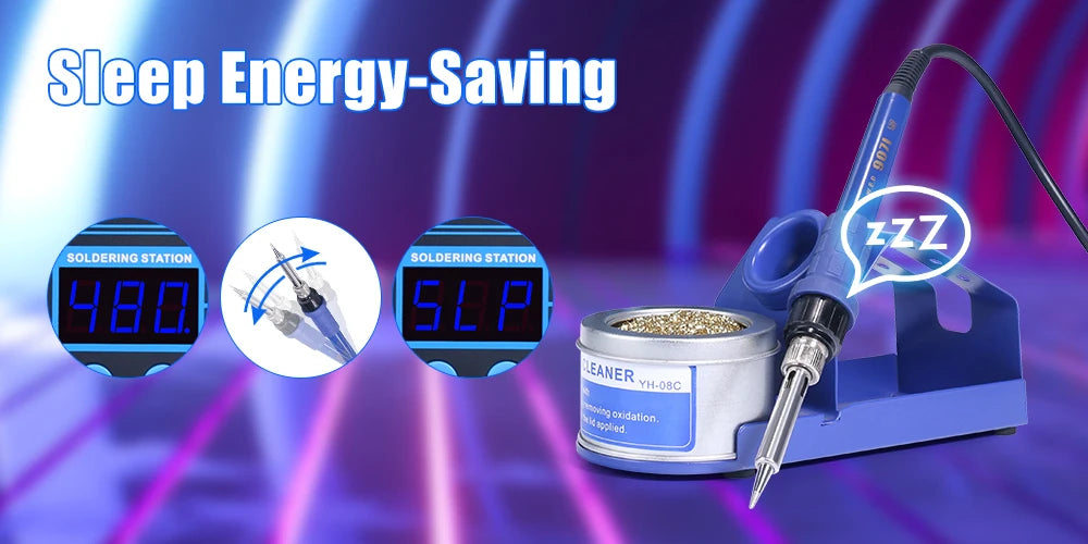 4. Extend the Lifespan Design- Comes with AUTO / MANUAL hot air modes & 0~99mins adjustable sleep mode to help extend the air gun, 5. soldering iron tips and heating element’s lifespan.